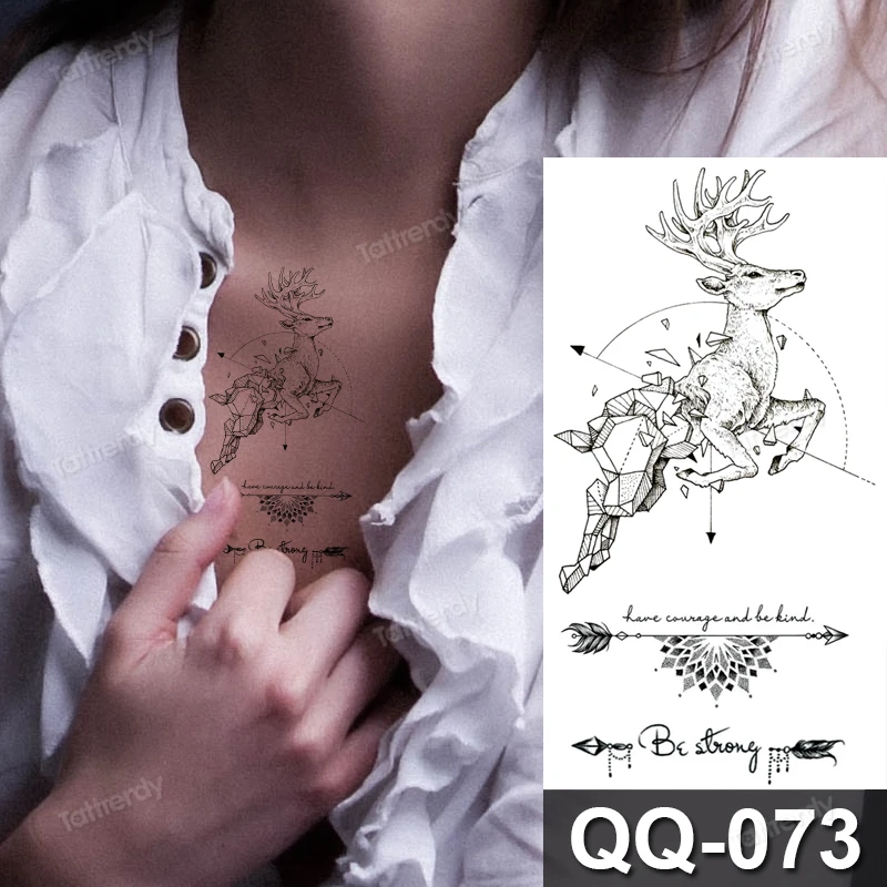 Kupit Tatuirovka I Bodi Art Waterproof Temporary Small Tattoos Anime Deer Owl Wolf Wings Owl Cute Tattoo Sticker Black Sketch Line Simple Tattoo Designs